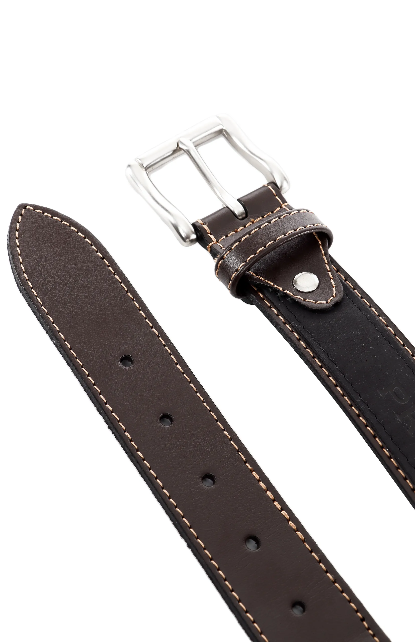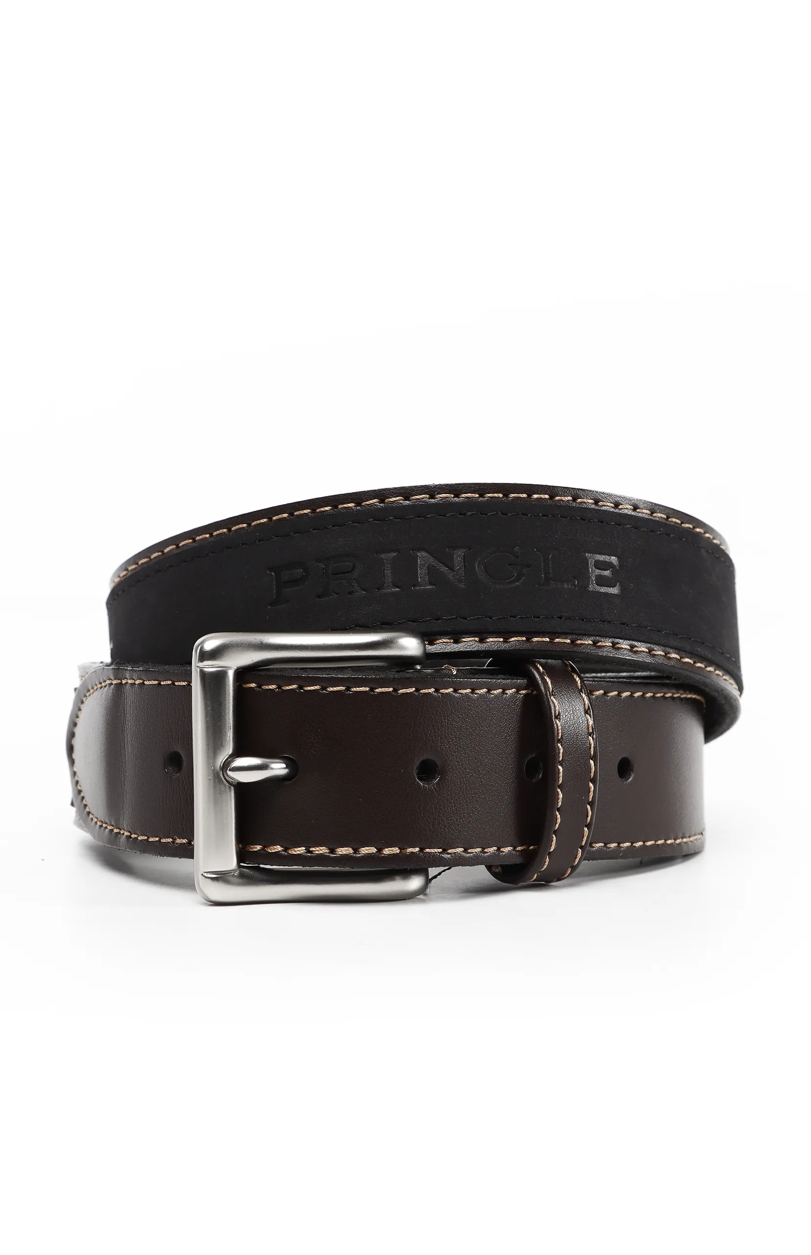 The Pringle Selbourne Belt is designed for those who appreciate textured quality and understated style. Made from premium nubuck leather, it features a soft matte finish that pairs effortlessly with denim or casual trousers. The embossed Pringle branding adds a subtle signature touch, while the sturdy metal buckle and contrast stitching enhance both durability and visual appeal. Available in classic black, the Selbourne Belt is a versatile essential that elevates everyday looks with quiet confidence.