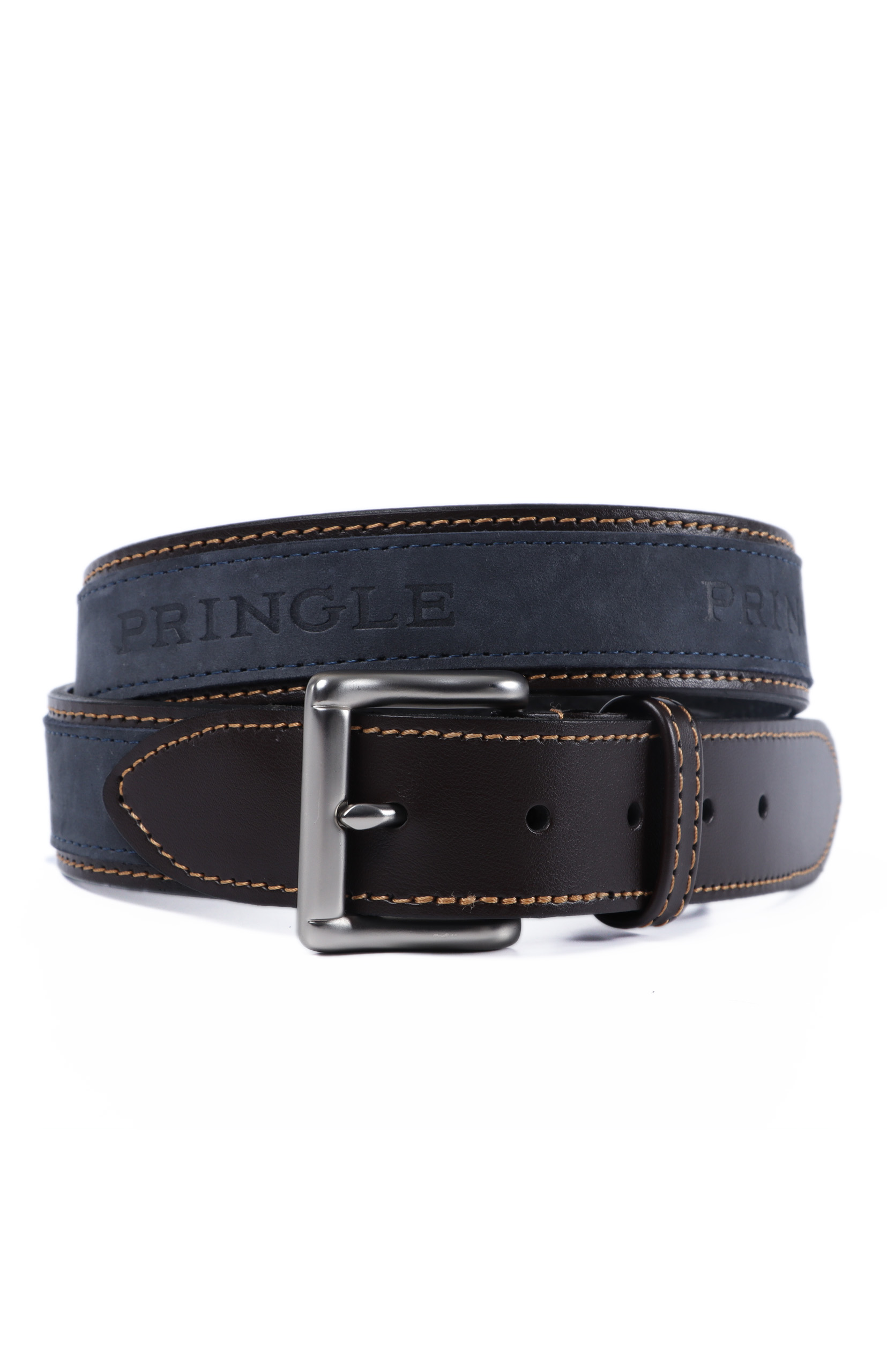 The Pringle Selbourne Belt is designed for those who appreciate textured quality and understated style. Made from premium nubuck leather, it features a soft matte finish that pairs effortlessly with denim or casual trousers. The embossed Pringle branding adds a subtle signature touch, while the sturdy metal buckle and contrast stitching enhance both durability and visual appeal. Available in classic black, the Selbourne Belt is a versatile essential that elevates everyday looks with quiet confidence.