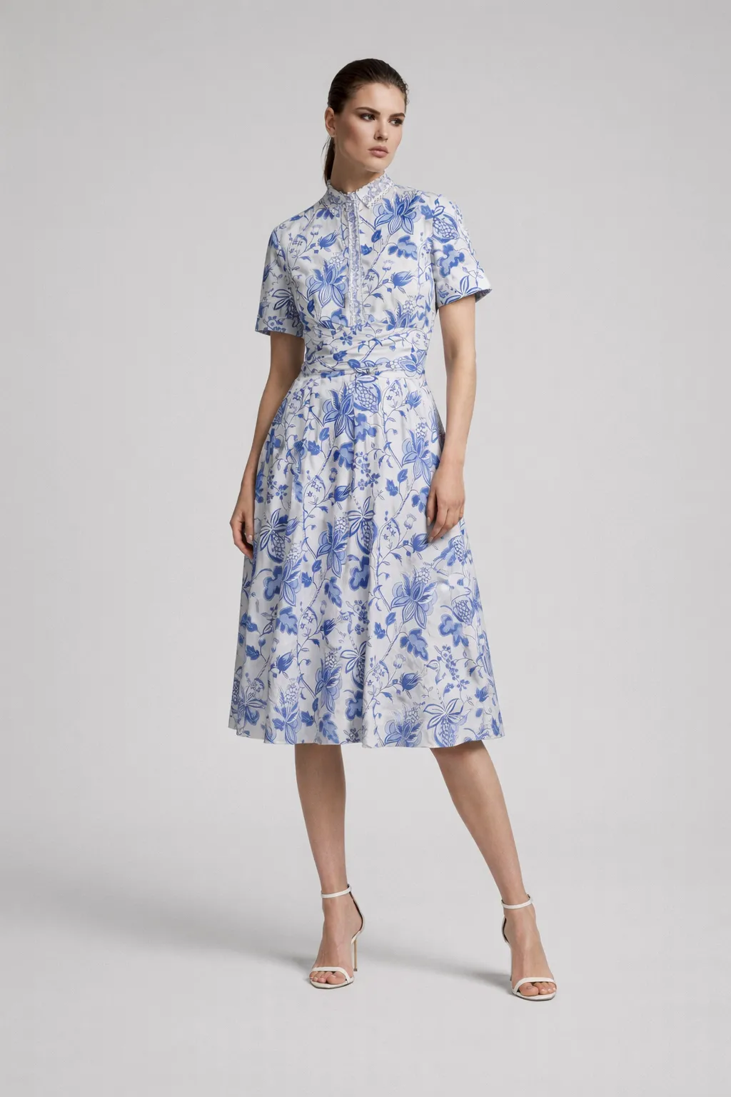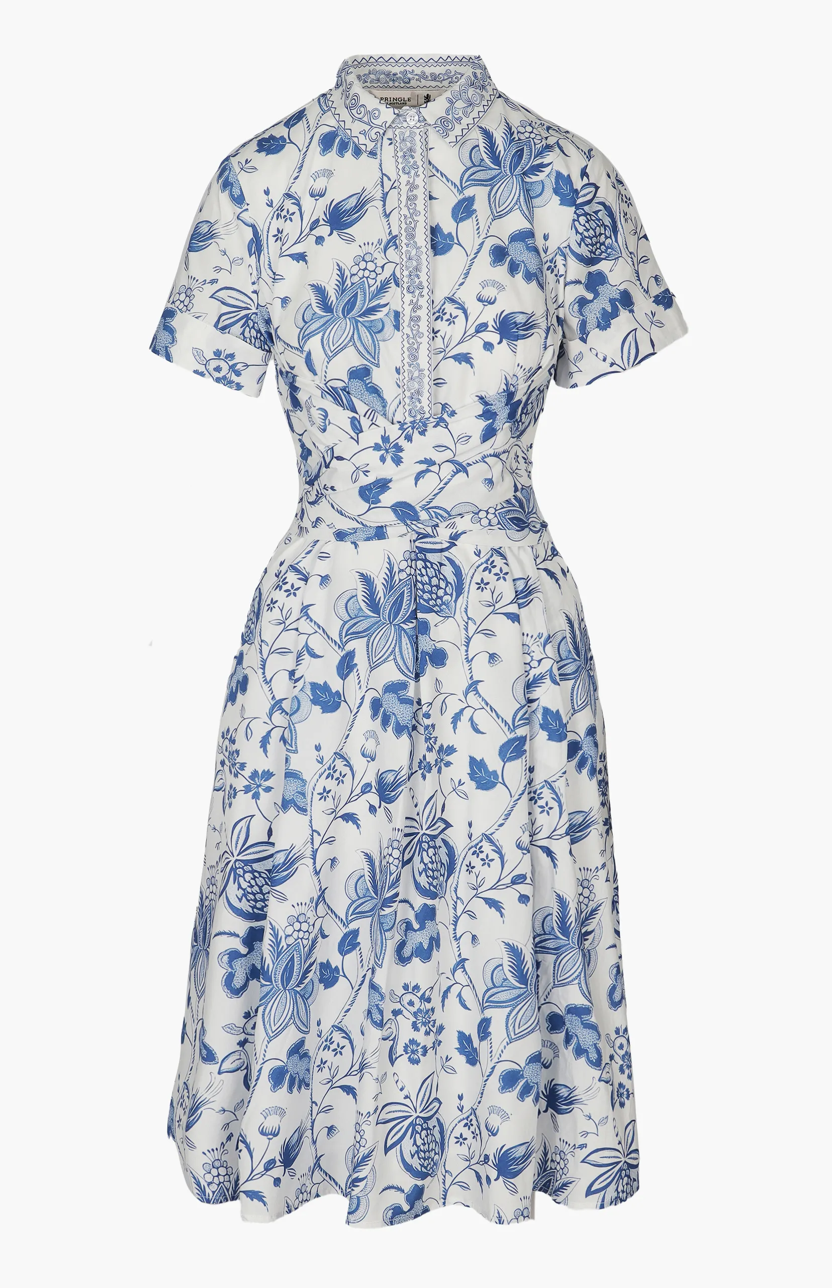 A 100% cotton midi wrap shirt dress featuring a flattering gathered front and a soft, feminine silhouette.