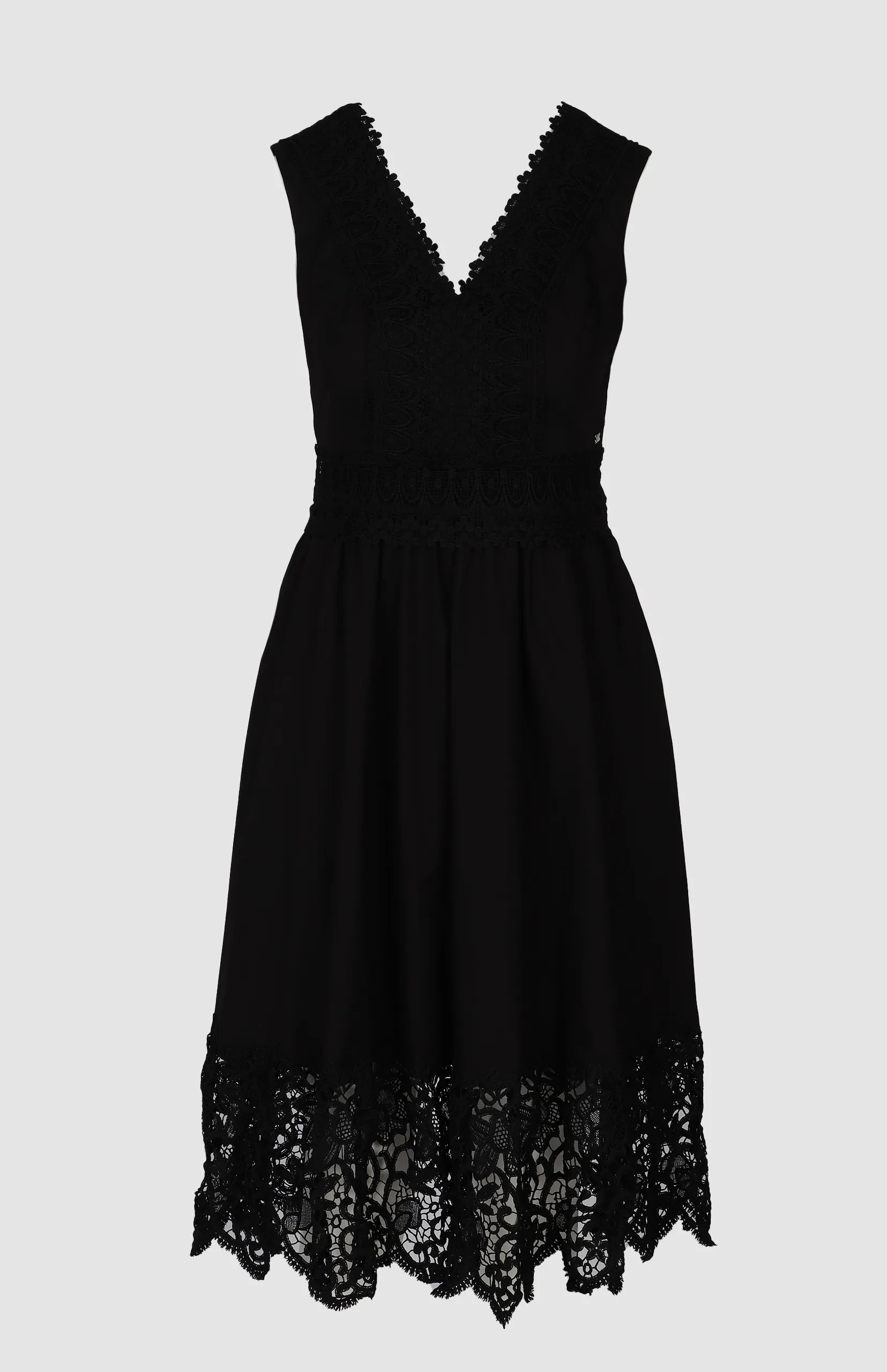 - All-over lace fabrication with detailed patterning