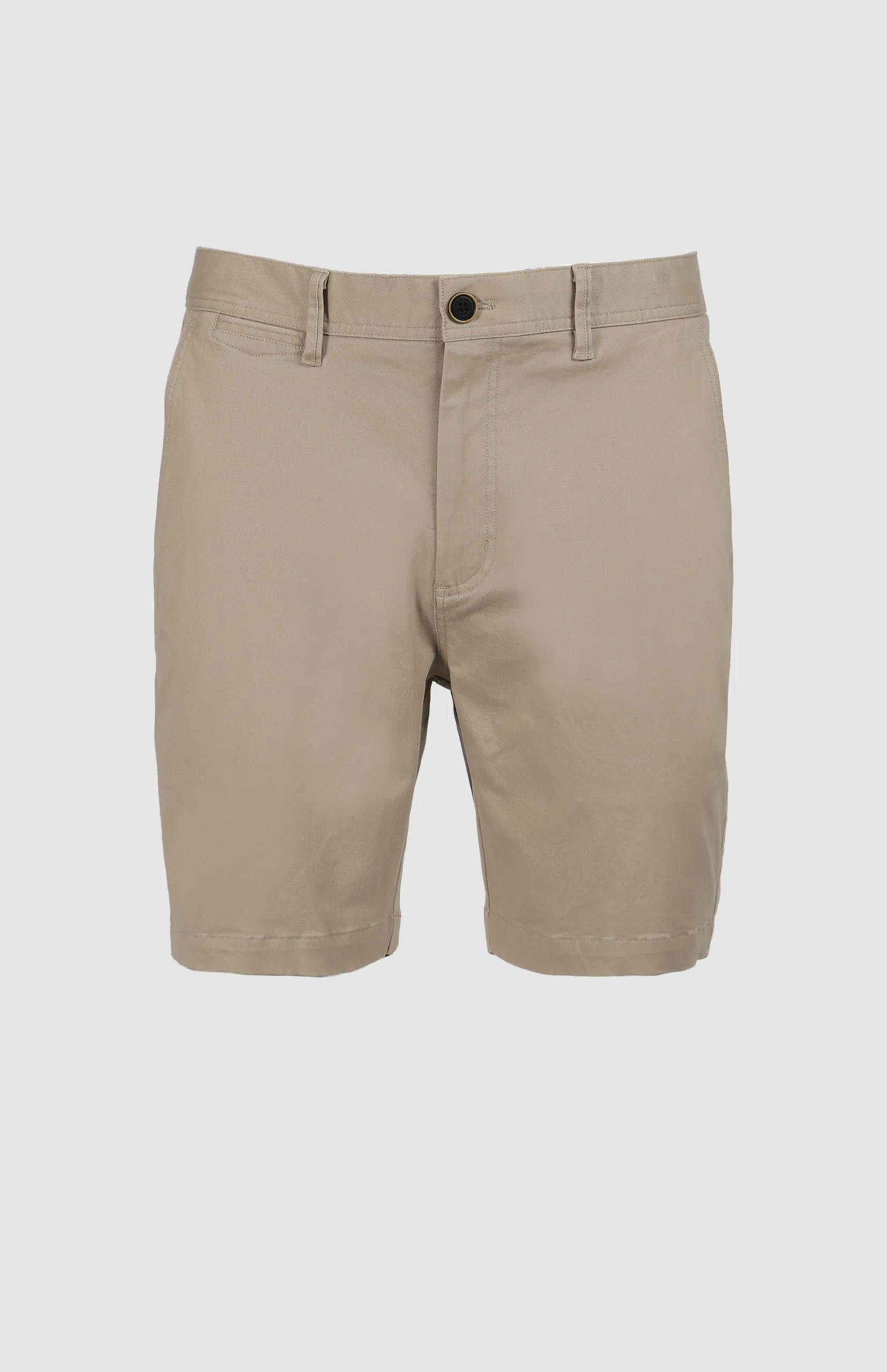 A modern mid-thigh chino short with a clean, tailored fit and added stretch for everyday comfort.