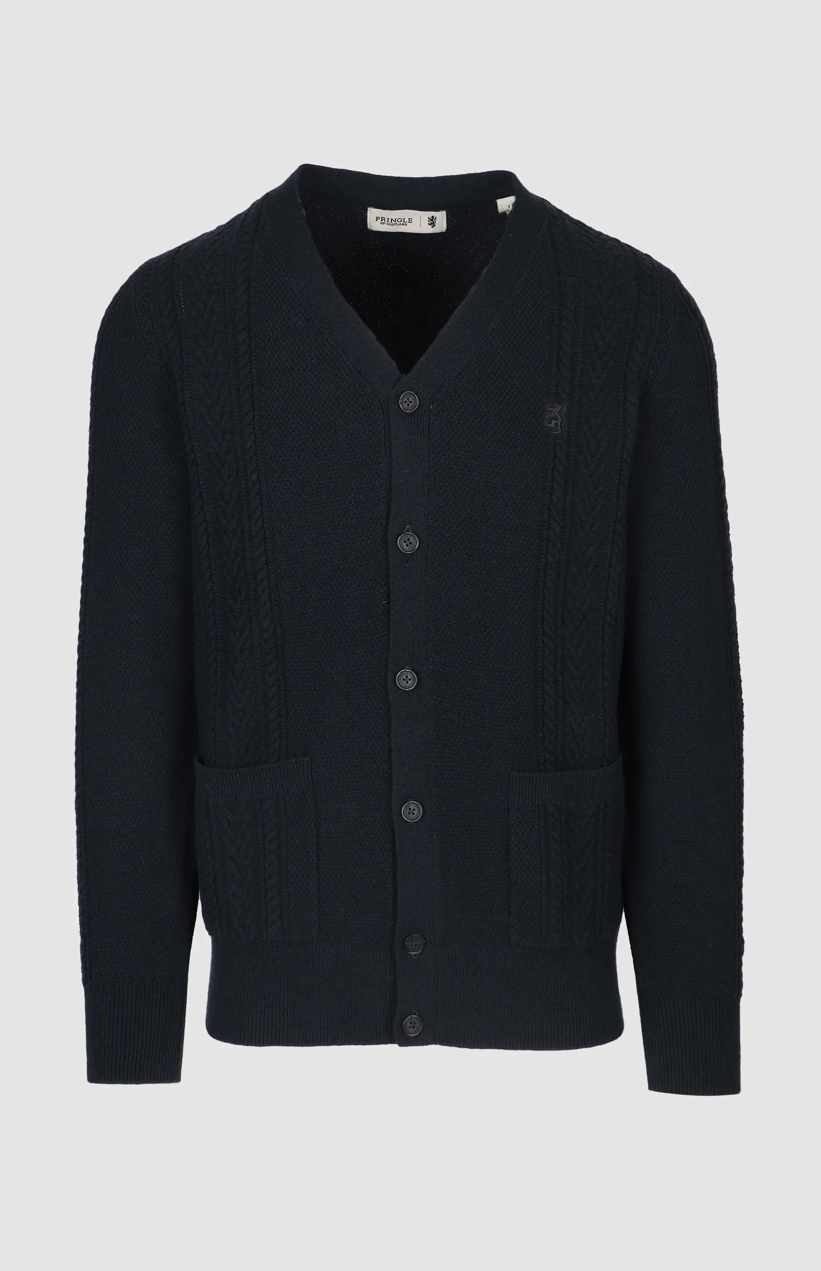The Steven Cable Cardigan blends classic cable-knit detailing with a modern silhouette, making it an essential layering piece for cooler seasons. Crafted from a soft wool-blend yarn, this cardigan provides warmth without compromising on comfort. The deep V-neck, button-down front, and practical front pockets create a timeless yet functional design suitable for both smart and casual wear.