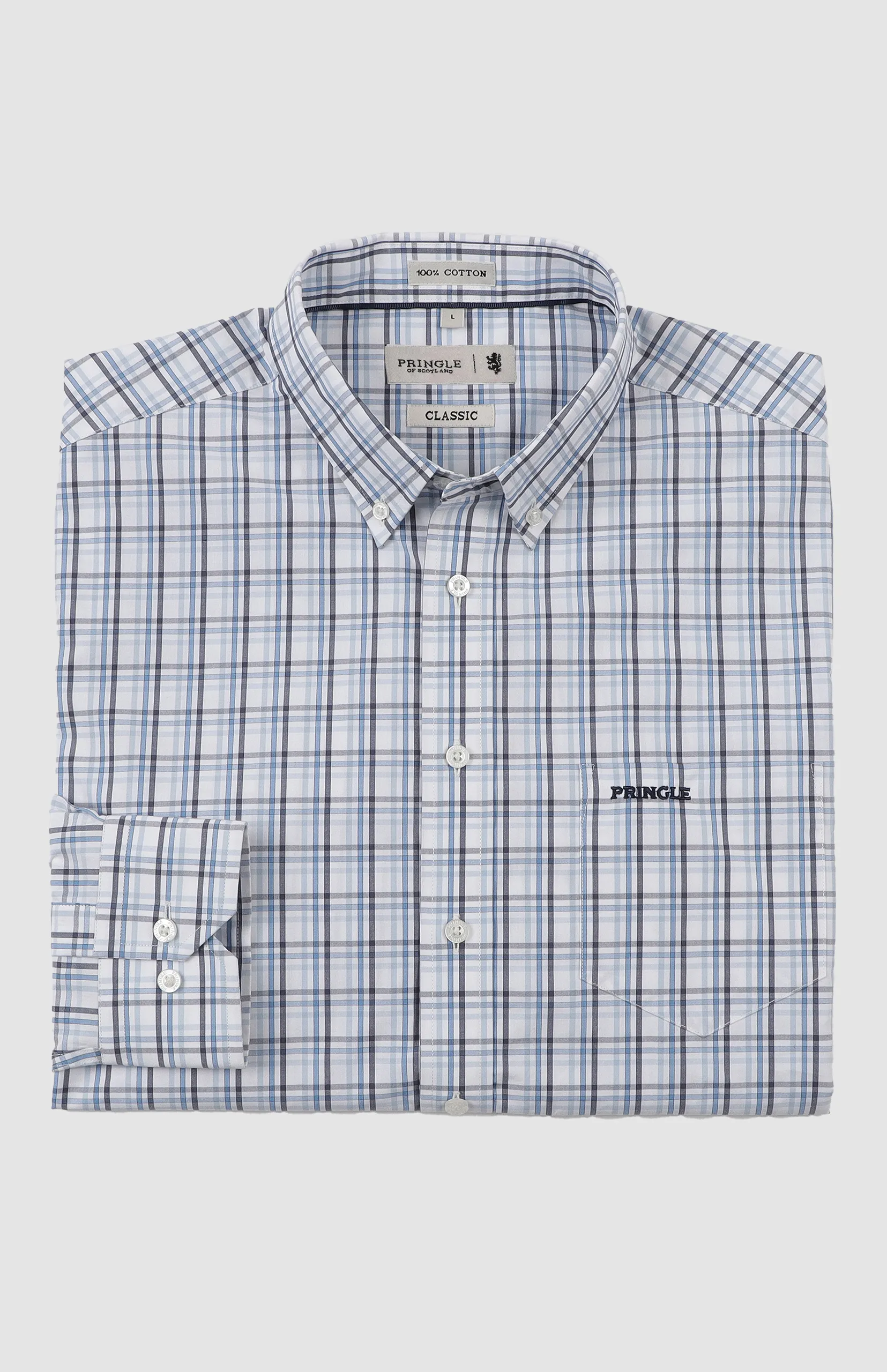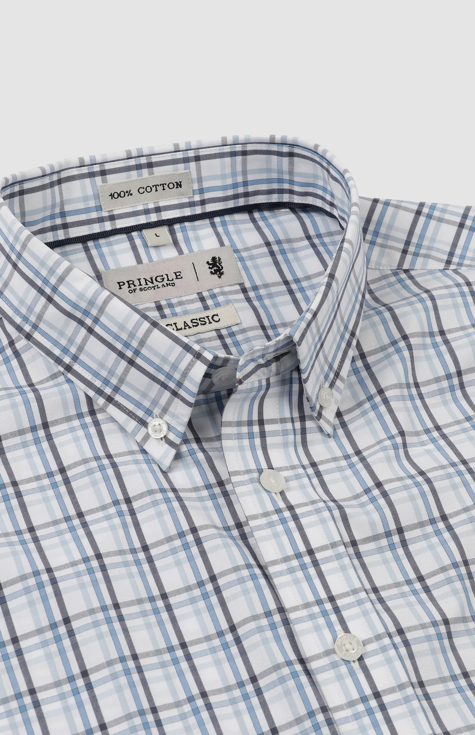 A timeless check shirt crafted from pure cotton, featuring a neat button-down collar and signature Pringle embroidery.