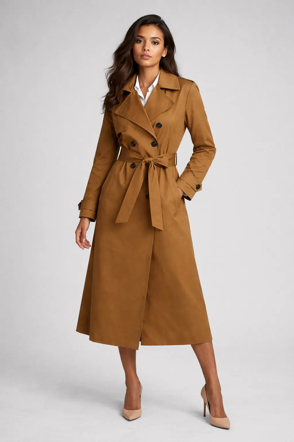 - Classic tailored trench silhouette