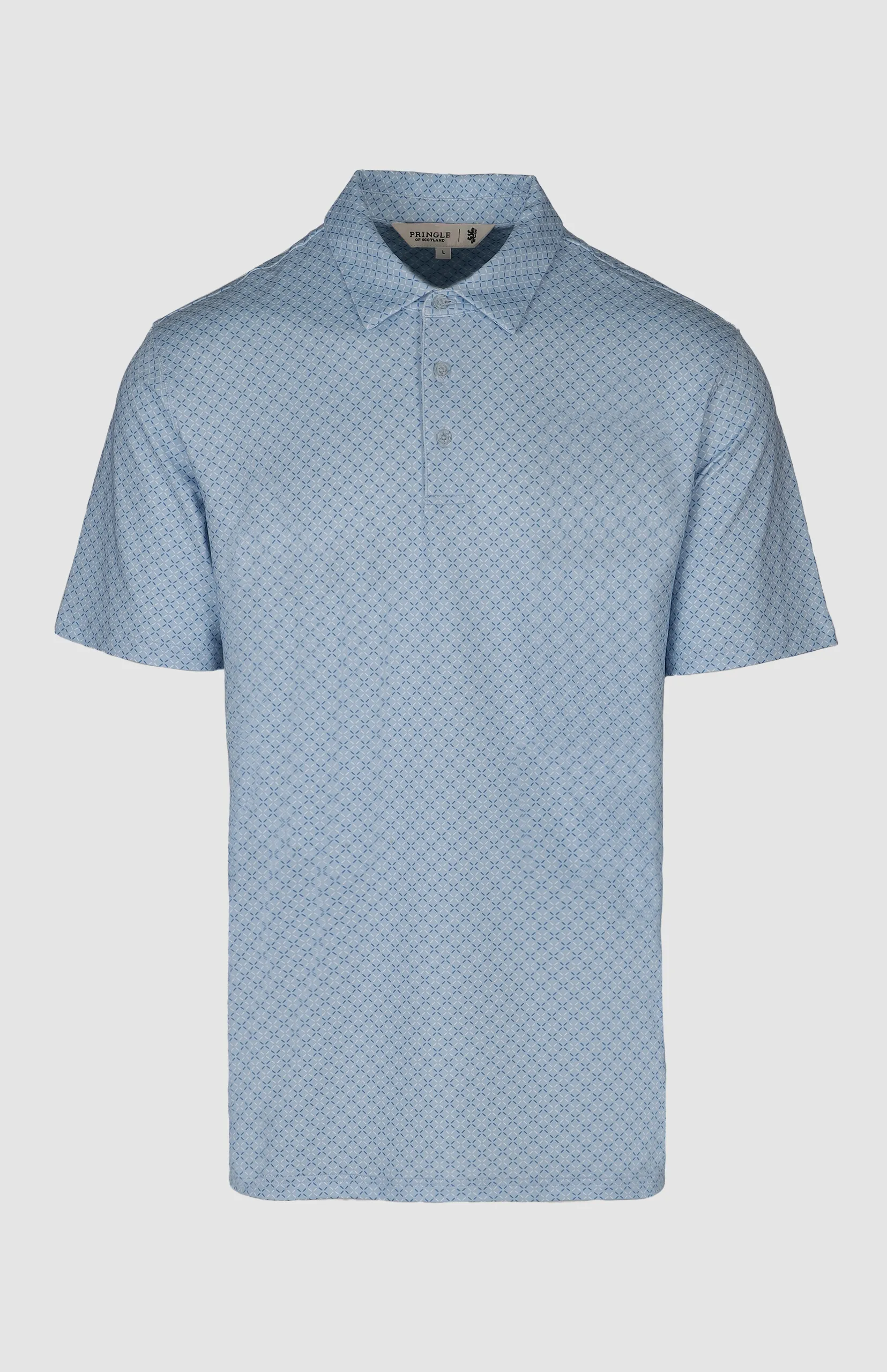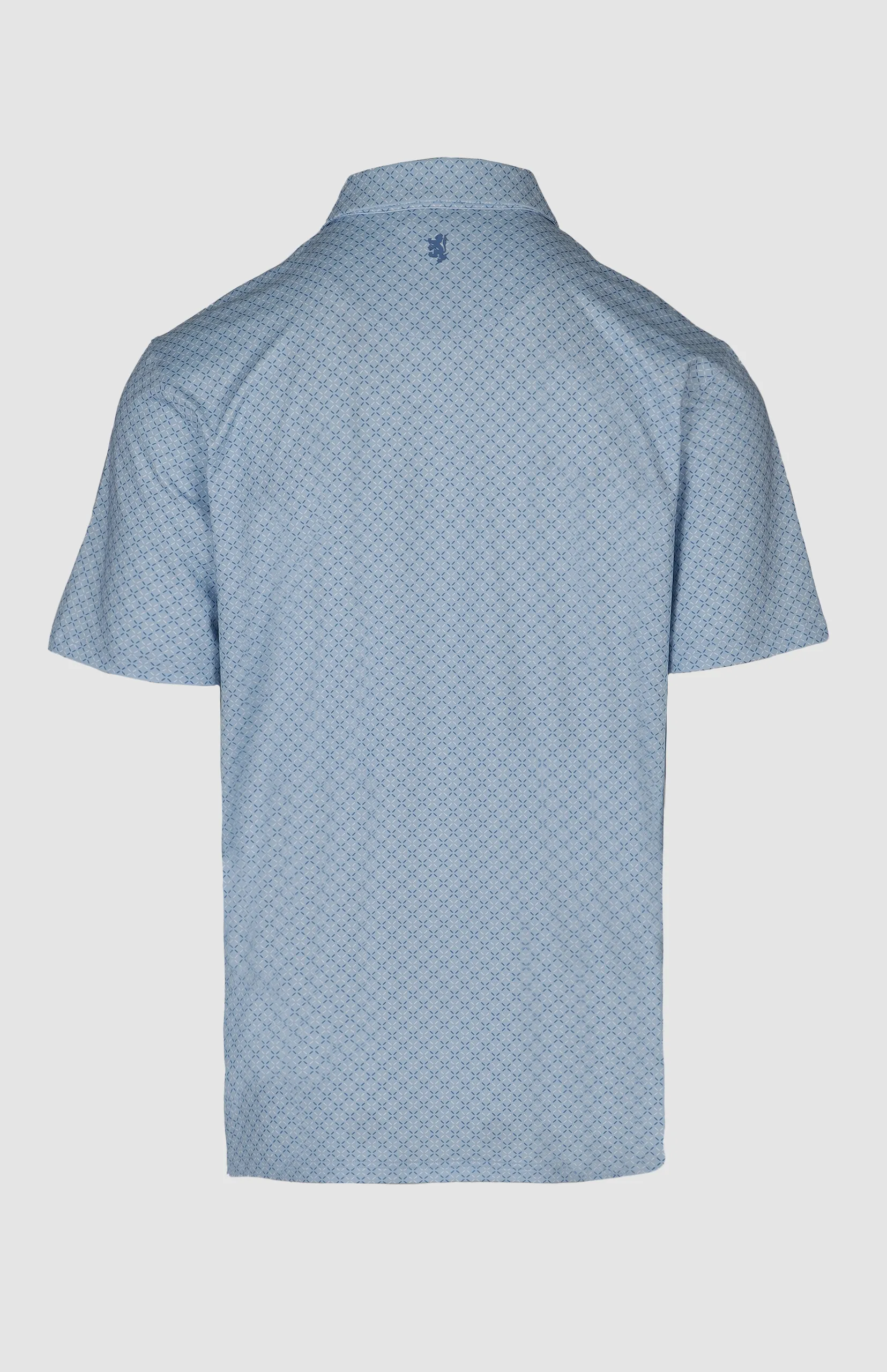 The Tom Performance Golfer is crafted from a premium polyester–spandex blend, offering stretch, breathability, and all-day ease of movement. Its subtle geometric all-over pattern gives the piece a sophisticated yet sporty aesthetic, while the raised HD rubber lion at the back adds a signature branded finish. Designed with a self-fabric collar for a clean, modern look, this golfer transitions effortlessly from course to clubhouse.